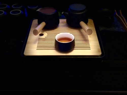 - Der gebrühte Tee wird in den Gerechtigkeitsbecher gegossen.
